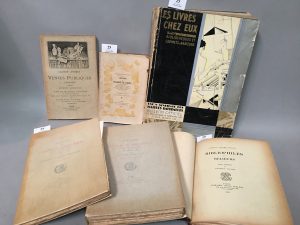(baron Jérôme). Bibliophiles et relieurs. Notes publiées par Georges Vicaire. Paris, Leclerc, 1907, in-8 carré demi-chagrin. 45 pp. Tiré-à-part à 45 exemplaires du Bulletin du Bibliophile. - LIVRES (LES) CHEZ EUX : bibliothèques et cabinets d'amateurs. P., 1930, fort in-4 br. (dos usé), ill., nbr. exemples typogr. & publicités. (Bull. officiel de l'Union syndicale des Maîtres imprimeurs, noël 1930). - VENTES PUBLIQUES. Quinze années de ventes publiques 1898-1913. Répertoire chronologique de 1700 catalogues illustrés de ventes. P., J. Schemit, 1898, in-8 broché. 188 pp. (Cat. de vente de cat. de ventes) . - CIM (A.). Amateurs et voleurs de livres. Emprunteurs indélicats... P., Daragon, 1903, in-12 broché. VIII-145 pp. Tiré à 325 exemplaires. Un des 300 sur Alfa. Soit 6 volumes.