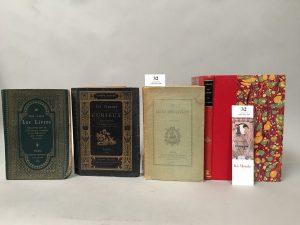 front. gravé, 318 pp., à toutes marges. - UZANNE (O.). Les zigzags d'un curieux : causeries sur l'art des livres et la littérature d'art. P., Quantin, 1888, in-12 br., front. à l'eau-forte, 307 pp., à toutes marges. - DERÔME (L.). Le luxe des livres. P., Rouveyre, 1879, in-8 broché. XII-134 pp. Tirage de tête à 100 ex. Un des 80 Whatman. Soit 4 volumes.