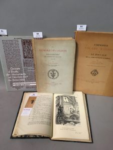 HOUDOY (J.). Les imprimeurs lillois. Bibliographie des impressions lilloises (1595-1700). P., Damascène Morgand, 1879, grd. in-8 broché. 22-391 pp. Fac-similés. On joint : - MICHEL (H.). L'imprimeur Colard Mansion, et le "Boccace" de la...