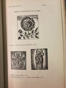 Lainé, 1916, in-4 demi-chagrin grenat, 178 pp.-4 planches h.-t. Figures dans le texte. Tiré à 300 ex. - OMONT (H.). Essai sur les débuts de l'imprimerie à Évreux (1600-1650) Paris, 1918, in-8 br., 38 p. (Extr. du Bull. phil. du CTHS). - VIVIER (E.). L'imprimerie à Coutances au XVIIº siècle. In-8 broché. 45 pp. (Extr. des notices, Mémoires et Documents publiés par la Sté d'Archéol. et d'Hist. Nat. du Dépt. de la Manche). Soit 4 volumes.