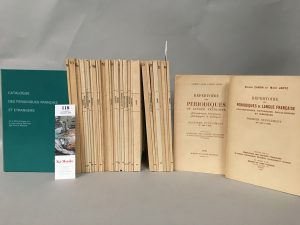 périodiques français et étrangers. P., 1978, in-8 toile éd. - CARON (P.) & M. JARYC. Répertoire des périodiques de langue française philosophiques, historiques, philologiques et juridiques. Premier-deuxième supplément. P., 1937 et 1939. 2 fasc. in-8 br. Soit 39 volumes.