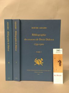 XVIIIe siècle ADAMS (David). Bibliographie des oeuvres de Denis Diderot 1739-1900. Ferney-Voltaire, 2000, 2 vol. grand in-8 reliure éd. 460 + 477 pp.