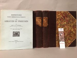 COTTINEAU (Dom L.H.). O.S.B. Répertoire topo-bibliographique des abbayes et prieurés. Macon, Protat, 1939, 3 vol. in-4 dont 2 demi-toile à coins (coins émoussés), le dernier broché. 3488 colonnes.