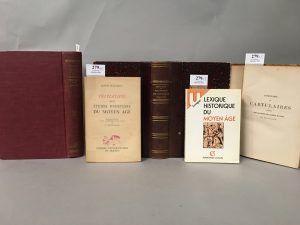 Ailleurs que dans les fonds de l'Etat, 66 pp. On joint : - STEIN (H.). Bibliographie générale des cartulaires français ou relatifs à l'histoire de France. P., Picard, 1907, in-8, demi-basane. 15-627 pp. (Manuels de bibliographie historique, Nº 4). - PAETOW (L.-J.). A guide to the study of medieval history. New-York, 1959, in-8, toile éd. XVII-643 pp - HALPHEN (L.). Initiation aux études d'histoire du Moyen Age. P., 1951, in-12 br. FÉDOU (R.). Lexique historique du Moyen Âge. P., 1989, in-16 br. Soit 5 volumes.