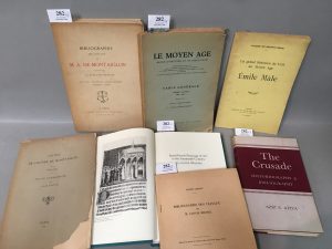 LORD (C.). Royal french Patronage of Art in the 14th century. An annotated bibliography. Boston, 1985, in-8 toile éd. 215 pp. On joint : - ATIYA (A. S.). The Crusade. Historiography and bibliography. Bloomington, 1962, in-8 toile éd. 170 pp. -...