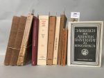 siècle de l'Institut de France. 25 Octobre 1795-25 Octobre 1895. P., Rothschild, 1895, 2 vol. in-4, demi-chagrin (dos frottés). 460-481 pp. Avec la biographie des académiciens des membres correspondants, la liste de leurs travaux etc. - GUIGUE (A.). La faculté des lettres de l'Université de Paris depuis sa fondation (1808-1935)... P., 1935, in-8, broché (dos usé), 371 pp. (donne les listes des professeurs, et des thèses par année). - STARK (E.). Bibliographie zur Universitätsgeschichte. 1945-1971. Freiburg, 1975, in-8 toile éd. 316 pp. - GUENÉE (S.). Bibliographie de l'histoire des universités françaises. Tome 1-Généralités. Université de Paris. P., Picard, 1981, in-8 br. 566 pp. - INSTITUT DE FRANCE (L') par Gaston Boissier, Gaston Darboux, Albert Franklin Paris, 1909, 2 volumes in-folio, demi-basane marbrée. 63-112 pp. 225 planches hors-texte (portraits, fac-similés, reprod. de gravures anciennes etc.) Tiré à 125 ex. num. sur Hollande. - MAINDRON (E.). L'Académie des Sciences. Histoire de l'académie, fondation de l'institut national. P., 1888, in-8 broché. 344 pp. 8 planches h.-t. 53 ill. - ACADÉMIE DES SCIENCES. Index biographiques des membres correspondants de l'Académie des Sciences de 1666 à 1939. P., 1939, in-12 broché. 477 pp. - LOUIS LE GRAND 1563-1963. Études, souvenirs, documents. P., 1963, in-8 br. 274 pp., ill. - BELGIQUE. Académie royale des sciences, lettres et des Beaux-Arts... Index biographiques des membres, correspondants et associés... de 1769 à 1963. Brux. 1964, in-8 br. - RAUSCHNING (D.). Die Albertus-Universität zu Königsberg und ihre Professoren vor 450 Jahren. Berlin 1995, fort in-8 Cart. 860 pp. Soit 14 volumes.