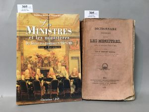 [Dictionnaires]. GALLOIS (Léonard Charles André). Dictionnaire historique de tous les ministres, depuis la Révolution jusqu'en 1827. P., Béchet, 1828, in-8 broché (dos fendillé). 12-502 pp. On joint : MAUREPAS (A. de) & A. BOULANT. Les...