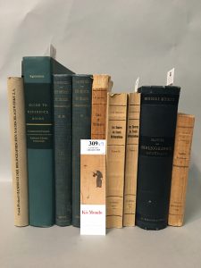 Bibliographies spécialisées (sciences exactes et techniques). AVEC : MALCLÈS (L.N.). Cours de bibliographie... Genève, 1954, in-8 br. 350 pp. On joint : - STEIN (H.). Manuel de bibliographie générale. P., 1897, fort in-8 toile de l'éd., XX-895 pp. - CALOT (F.) & G. THOMAS. Guide pratique de bibliographie. P., Delagrave, 1936, in-12 broché (rouss. sur couv.). 320 pp. - TOTOK (W.) & R. WEITZEL. Handbuch der bibliographischen Nachschlagswerke. Frankfurt, 1959, in-8, toile éd. XV-335 pp. - WINCHELL (C. M.). Guide to reference books. 8th ed.. Chicago, 1967, in-4, toile éd. Table alpabétique des sujets et des auteurs. Soit 9 volumes.
