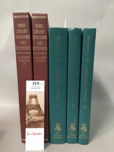 MASUI (M.). Bibliography of finances. New-York, 1969, 3 vol. in-4, toile éd. On joint : KRESS LIBRARY (The) of Business and Economics. Catalogue... 1-to-1776. 2-1777-1817. 2 vol. in-4 toile éd. Soit 5 volumes.
