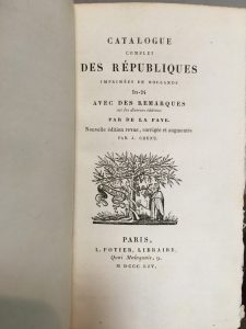 Livres miniatures NAUROY (C.). Bibliographie des impressions microscopiques. P, Charavay, 1881, in-18 demi-maroquin à long grain, 125 pp., tiré à 250 ex. On joint : LA FAYE (de). Catalogue complet des Républiques imprimées en Hollande in-24,...