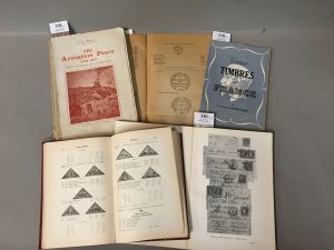in-8 br. - LE PILEUR (J.). La poste par ballons montés. 1870-1871. Amiens, 1943, in-8 br. 176 pp. - LOCARD (E.). Vieux timbres de France. (P., 1943), in-8 broché. 146 pp. - POSTE AÉRIENNE. Catalogue historique et descriptif. P., Champion, 1937, in-12 toile éd. Soit 5 volumes.