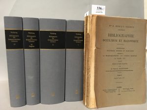 WOLFSTIEG (A.). Bibliographie der freimaurerischen Literatur. Hildesheim, 1992, 4 forts vol. in-4 toile éd. On joint : JOUIN (Mgr. E.) & V. DESCREUX. Bibliographie occultiste et maçonnique. Répertoire d'ouvrages imprimés et manuscrits relatifs à...