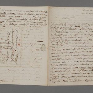 Christiaan Hendrik Persoon (1761-1836), botaniste et mycologue sud-africain & hollandais, auteur de plusieurs ouvrages de référence sur les champignons. L.A.S. au botaniste italien Giuseppe Raddi (1770-1829). Paris, 18 mars 1820. 4 pp. in-4. Adresse au verso « Monsieur Joseph Raddi - Botaniste très-célèbre Florence », avec marques postales. Petit manque de papier par bris du cachet.