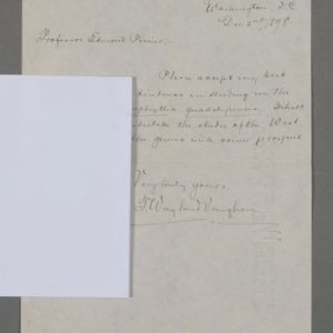 Thomas Wayland Vaughan (1870-1952), géologue et océanographe américain. L.A.S. au zoologiste Edmond Perrier (1844-1921), directeur du Muséum. U.S. Geological Survey, Washington D.C. 2 décembre 1898. 1 p. in-4. En anglais.