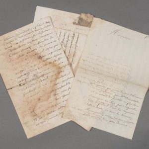 Alsace Colmar Antisémitisme Fausse monnaie. Ensemble de 2 lettres de François Dietreman, conseiller du Roi au Conseil souverain d'Alsace, prêteur royal de la ville de Colmar et subdélégué de l'Intendance de Haute-Alsace adressées, adressées à « Monseigneur » + une pièce signée en hébreu. Colmar, sept.-oct. 1717. 9 pp. in-folio. Mouillures importantes.