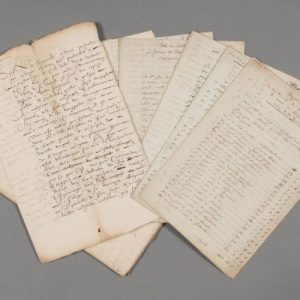 - Prospectus de fondation d'une « maison de santé pour les aliénés des deux sexes » à Marseille. Vers 1800. 7 pp. in-8. - Pièce manucrite anonyme début XIXe « Honneur au préfet des Bouches-du-Rhône ». - Manuscrit d'un rapport d'estimation des maisons du seigneur de Mazergues (1775, 80 pp. in-4). - Certificat délivré par Mgr de Belsunce (Marseille, 1720) en faveur de noble Louis de Calaman trésorier général de France en Provence. - Intéressante correspondance de 11 lettres signées des maire et consuls de Tarascon, adressée au corps des chaussées d'Arles (1760-1762) + lettre circulaire d'un producteur d'huile d'olives à Aix (1882) et une lettre incomplète à « Monseigneur » (Marseille 1676) sur l'application d'une ordonnance de Marine.