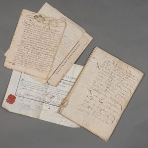 - Brevet sur parchemin de la « Fédération de la ville de Beaucaire », en partie imprimé, avec de nombreuses signatures + cachet de cire. An 2.