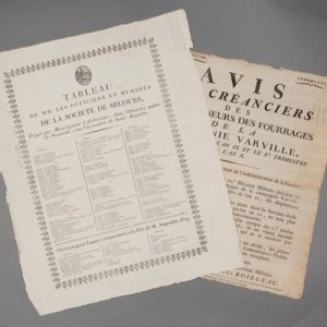 - « Tableau de MM. les officiers et membres de la Société de secours érigée par Monseigneur l'Archevêque, dans l'Oratoire public de Nazareth, sous l'invocation de Saint-Augustin » [Toulouse, 1819]. 52 x 43 cm. Déchirure en marge.