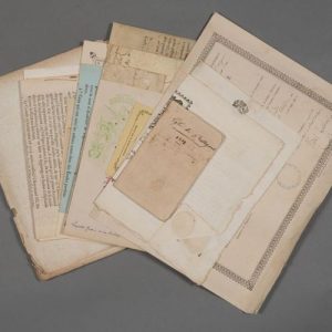 - 2 jolis brevets de la Société de Jésus de Toulouse (1746-1748). - [Colportage] : almanach imprimé à Toulouse chez Ausgustin Hénault : « Le véritable almanach des dieux pour l'année 1817 [] ». « Brevet de capacité du second degré (enseignement des filles) » (Toulouse, 1875). 2 cartons d'invitation à l'Académie des Jeux floraux. 3 lettres de Léopold Gros (en-têtes de La Tolosa société des grands concerts et de la Revue verte, littéraire de Toulouse, 1907). 4 extraits des registres du parlement de Toulouse (parchemins, 1631 et 1767). Petite affiche de l'École de droit de Toulouse (1808). Programme des offices du Tridum (Toulouse, 1900). Imprimé du XVIIe des lettres patentes de Saint-Louis de 1228 par lesquelles il accorde à Raymond VII la jouissance du comté de Toulouse (8 pp. in-folio). Imprimé de 3 pp. in-4 : « Cantique à l'honneur de la naissance de notre-seigneur Jésus-Christ mis en musique par M. Valette de Montigny, maître de la chapelle de musique de l'insigne Eglise Abbatiale de Saint-Sernin de Toulouse, 1733 ». Longue lettre de Jean Antoine de Catellan (Toulouse 1759-1838), magistrat et homme politique toulousain, au sujet d'une question de droit féodal (8 pp. in-4). Brochure au sujet du « Canal des Pyrénées » projeté par M. Galabert, et les avantages qu'il procurerait à Toulouse (1831, 48 pp. in-4).
