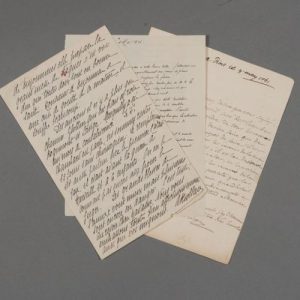 Lettre du vicaire général à Diors adressée à l'archiprêtre Basset à Issoudun (1751, au sujet de la cure de Saint-Jean-des-Chaumes). Lettre de l'archiprêtre d'Issoudun, A. Chevalier (1916). Intéressante lettre de l'hôpital auxiliaire d'Issoudun, alors placé sous l'égide de la Croix rouge d'Issoudun (1916, 4 pp. in-4, faisant un état des lieux de la situation de l'hôpital et de son personnel).