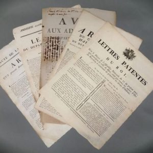 Landes. 6 affiches de la Révolution. La plupart imprimées Chez Leclecq ou Delaroy à Mont-de-Marsan. 1790 an 12. Quelques défauts.