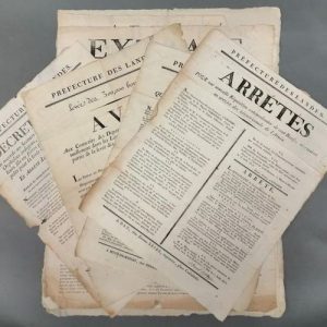 Landes. 9 affiches du premier Empire. Imprimées à Mont-de-Marsan ou Dax, chez Delaroy ou Etienne Seize. 1806-1813.