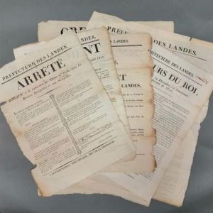 Landes. 15 affiches de la Restauration, imprimées à Mont-de-Marsan, chez Delaroy. 1814-1828.