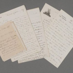 - 6 L.A.S. d'Amédée Martinon de Saint-Ferréol (1810-1904). Brioude, 1877-1896. 16 pp. in-16, en-têtes de la Chambre des députés. Don fait à la bibliothèque de Brioude, renseignements sur les conventionnels de Haute-Loire, article pour la Société littéraire du Puy, décès d'Aimé Pissy ? « notre vieil ami enfant de Brioude »