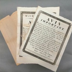 - « Avis important » sur la tenue d'une foire annuelle dans la ville d'Agen durant la semaine-sainte. Agen, 25 brumaire an 12.