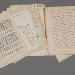 - Sainte-Menehould 1789-1817. 7 lettres et documents principalement d'époque révolutionnaires : lettre de Gilson (nov. 1789), certificat de résidence pour une aubergiste (nombreuses signatures), certificat d'imposition, certificat de paiement à François Bertrand « aveugle en cette ville », lettre de plainte contre le notaire Mathieu, etc.
