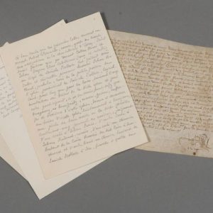 Orne Orne. Parchemin de la fin du XVe siècle, avec 2 seings manuels. 26 x 16 cm. Petit cachet de …