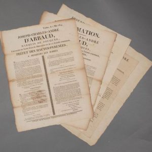 Hautes-Pyrénées Hautes-Pyrénées. 5 affiches de la première Restauration, proclamations des préfets des …