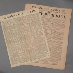 Ordonnance du Roi sur la fièvre jaune provenant de Catalogne. « Art 2 : Tout voyageur, sans exception, venant d'Espagne y sera soumis à une quarantaine qui variera selon les cas. S'il arrive de Barcelone [foyer de la contagion] ou de toute autre ville où la contagion s'est déclarée, il ne pourra être admis en quarantaine qu'autant qu'il ne serait porteur de papiers avisés []. Art. 6 : Toutes communications ou introductions quelconques par les départements de l'Ariège et des Hautes-Pyrénées demeurent interdites [] ».