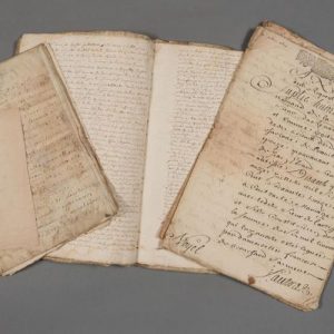Joint un ensemble de 9 manuscrits et documents XVIIe-XVIIIe concernant cette même famille (dont une supplique de Léonard de La Plasse de 30 pp. in-folio, 1699).