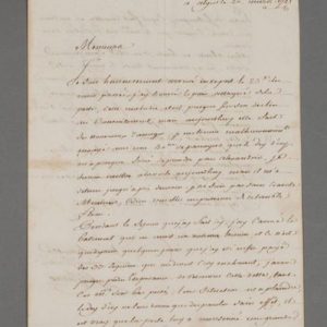 La peste à Alger. « Je suis heureusement arrivé en ce port le 25e du mois passé, j'ay trouvé le païs attaqué de la peste, cette maladie étoit presque sur son déclin au commencement, mais aujourd'huy elle fait de nouveaux ravages. Je me trouve malheureusement engagé avec une quarantaine de passagers que le dey d'icy [Ali-Pacha] m'a presque forcé de prendre pour Alexandrie. Je devois mettre à la voile aujourd'huy mais il m'a détenu jusqu'après demain : je ne suis pas sans crainte, Messieurs, Dieu veuille me préserver de ce terrible fléau ». Il explique qu'il a fait caréner son navire et qu'il a enfin été payé des 33 sequins que Sidi Mahmoud lui devait. « J'avois presque perdu l'espérance de recouvrer cette dette tant ces messieurs sont bas percés ; leur situation est à plaindre, le dey d'icy ne leur donne que des paroles sans effet ; il est vray que la peste luy a moissonné une grande partie de ses troupes ». Il évoque les marchandises disponibles sur les marchés d'Alger et conclut : « faites moy passer vos ordres en Syrie ».
