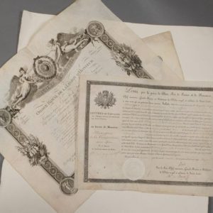 Brevets Brevets. Ensemble de 4 brevets accordés à différents membres de la famille Marigner. 1788-1823. …