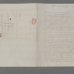 Longue lettre intime pleine d'amour pour sa cousine et évoquant ses souvenirs familiaux. « Je crois, ma jolie cousine, que tu aurais tort de te prétendre plus riche en souvenirs que moi. Il est une bonne raison pour cela : j'étais ton amant, il faut trancher le mot, et tu n'étais que mon amie : ainsi tout ce qui faisait une profonde impression sur mon coeur ne pouvait que te frapper légèrement : je te veux citer une particularité qui te fera juger du prix que j'attachais aux moindres choses qui me venaient de toi. Te souviens-tu que quelques moments avant de quitter St Rémy pour la dernière fois, nous descendîmes ensemble au jardin et que là tu choisis un bel oeillet rouge que tu plaças toi-même à ma boutonnière ; eh bien, mademoiselle, cet oeillet je le conservai trois jours, moi qui ne m'étais jamais soucié de garder une fleur seulement deux heures ; non content de cela, pour ne pas le perdre, je le retirai ensuite de mon habit et le ramenai religieusement dans cette jolie petite bourse que tu m'avais donnée deux ans auparavant []. Je suis toujours aussi content de mon vaisseau, de l'état-major, de mon service []. Nous continuons à sortir de temps à autre pour exercer nos équipages et nous montrer un instant aux Anglais [] ».