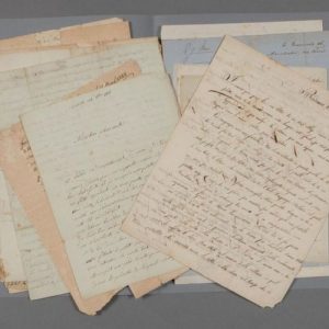 Pièce signée par Nicolas Gravier (Galata 1801) évoquant son arrestation par les Turcs en octobre 1798 et la confiscation de tous ses biens par le gouvernement ottoman ; facture de l'armateur marseillais de la bombarde « La Victoire » pour le voyage jusqu'à Constantinople (1825) de son neveu Joseph Gravier ; lettre à son neveu Joseph venu le rejoindre à Constantinople ; inventaire et estimation « en monnoie Turque et en monnoie de France » des bijoux et du mobilier de la future épouse de Joseph (Galata-les-Constantinople, 1826, 3 pp. grand in-folio) ; factures d'achats faits pour son compte (1835) ; plusieurs lettres adressées à Joseph, Nicolas et Joachim Gravier à Galata par des membres de la famille ou des négociants (1819-1847, dont 2 provenant d'Angleterre avec cachets postaux) ; lettre de Joseph Gravier annonçant qu'il a trouvé une relique de la croix du Christ et en donne l'historique ; décision de justice relative au naufrage du navire appartenant à Alfred Gravier « La Ville de Brest » dans le port de Marseille, lettre de Casimir Gravier à l'ambassadeur de la Porte Ottomane sur la créance du prince Kémal Eddin Effendi fils d'Abdul Medjid, etc. ainsi que le récit de la première partie de son voyage devant le mener de Bordeaux à Constantinople à travers le canal du Midi (1819, 3 pp. in-folio).