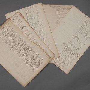 - Charles Jean François Hénault (1685-1770), écrivain et académicien. Manuscrit autographe. Milieu du XVIIIe siècle. 26 pp. ½ in-folio. Plan d'un ouvrage semble-t-il inédit, intitulé Histoire et usages de l'Église. De sa minuscule écriture, Hénault détaille minutieusement le contenu de chaque page de cet ouvrage monumental. Cette ébauche, qui débute par la vie de Moïse, semble inachevée, se terminant à la page 811 par les « conditions appelées par le pape Paul 3e à la concession de l'Indult » [Paul III a régné de 1534 à 1549]. Joint 4 manuscrits, sans rapport, provenant des papiers du président Hénault (projet d'incorporation des compagnies, copies de lettres de Louise de Savoie et de Florimont Robertet pendant la captivité de François 1er, etc.) ; au total 16 pp. in-folio.