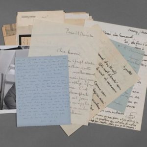 - Correspondance d'une trentaine de lettres adressées au peintre Marcel Mouillot (1889-1972) + divers documents : Georges Huisman (5), Julien Cain, Georges Prade, l'explorateur Julien Maigret (écrite de Conakry), Henry de Waroquier, Jacques Boulenger, Dom Angelico Surchamp, Jacques Guignard, lettre d'un peintre écrite de Karnak avec bel en-tête, lettres de galeristes, de clients, de collectionneurs, etc.