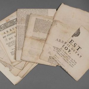 Ensemble d'affiches et d'imprimés de la première moitié du XVIIIe, la plupart concernant la Provence : « collecteurs des Tailles des communautez de Provence » (1734), le « droit de pulverage en Provence » (1736), la levée du « Dixième dans le pays & comté de Provence » (1734), confection du « papier terrier », etc.