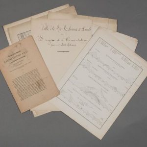 - Ville de la Chaux-de-Fonds. Projet d'alimentation par un puits artésien. Manuscrit par un collaborateur d'Auguste Jaccard. [1875 ?]. 11 pp. in-folio.