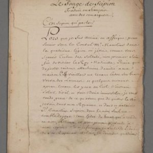 Abbé d'Olivet Abbé d'Olivet. Manuscrit avec ajouts autographes, Le Songe de Scipion, traduit en françois avec …