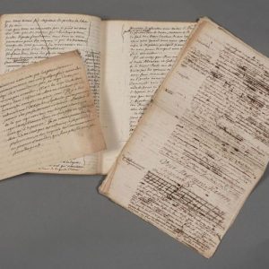 Manuscrit (incomplet) de la traduction d'une tragédie de Sophocle. Ne figurent que les feuillets 4, 5, 9 et 10, ainsi que d'un feuillet liminaire : « Endroits susceptibles de plusieurs sens ». « A. Il y a dans cette Tragédie plusieurs endroits dont il est presque impossible de déterminer le véritable sens. Les Scholastiques grecs ne sont pas d'accord entre eux []. Dans ma traduction, je me suis toujours déterminé pour le sens qui m'a paru le meilleur ; et dans mes notes, j'ai souvent proposé les différents sens des autres interprètes, anciens ou modernes. Le lecteur jugera pour ou contre, selon ses lumières []. Les ennemis des anciens ne manqueront pas icy de nous insulter. Ils diront que nous admirons souvent ce que nous n'entendons pas [] ».