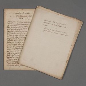 . [François de Maucroix (Noyon 1619-1708), poète et traducteur, ami intime de La Fontaine]. 2 manuscrits autographes de 3 mains différentes non attribuées, le premier de deux mains différentes, portant de très nombreuses ratures et corrections. Le manuscrit est contenu dans une chemise portant cette mention de l'époque : « Traduction des trois premières Catilinaires [de Cicéron] et du Phormion de Térence. L'auteur de cette traduction est probablement l'abbé de Maucroix ». 41 pp. in-4 pour le premier texte, 36 pp. in-4 pour le second (la fin manque).