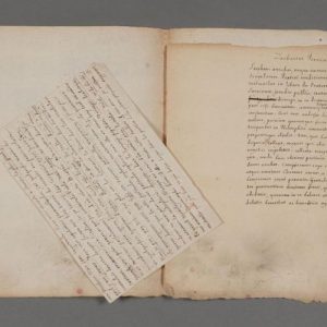 [Zachary Pearce (1690-1774), évêque et écrivain anglais, traducteur de Cicéron et défenseur de Milton]. Manuscrit autographe (1 p. in-4) et fragment autographe de lettre (2 pp. ½ in-8), de la main de l'abbé d'Olivet, conservés dans une chemise titrée « Lettres de Pearce ».