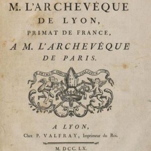 [MALVIN DE MONTAZET (Antoine de). LETTRE DE M. L'ARCHEVÊQUE DE LYON, PRIMAT DE FRANCE, A M. L'ARCHEVÊQUE DE PARIS. LYON, VALFRAY, 1760. Un volume, in-4, de titre, (4) ff.,