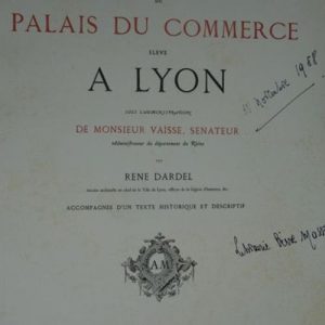 DARDEL (René) DARDEL (René). MONOGRAPHIE DU PALAIS DU COMMERCE ÉLEVÉ A LYON. Sous l'administration de …