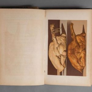 GOUFFÉ Jules. LE LIVRE DE CUISINE. Comprenant la cuisine de ménage et la grande cuisine. Cinquième édition. PARIS, HACHETTE & Cie, 1881. Un fort volume, in-8, de (2) ff., XI pp., 861 pp., (1) f., demi-reliure de l'époque en basane bronze. Dos lisse orné de filets dorés et portant le titre doré. Dos uniformément éclairci, frottements légers sur les coupes, feuillet de titre recollé, quelques rousseurs. Avec 4 planches imprimées en chromo lithographie et 182 gravures sur bois dessinées d'après nature par E. Ronjat.