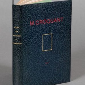 GOURMONT Rémy de. M. CROQUANT. PARIS, GEORGES CRÈS & Cie, 1918. Un volume, in-16, de 114 pp., pleine reliure en maroquin bleu. Dos lisse portant seulement le titre doré, titre répété en rouge sur le premier plat souligné d'un rectangle en filet doré, tête dorée, couverture et dos conservés. Édition originale ornée d'un portrait de l'auteur et décorée de dessins originaux gravés sur bois par Raoul Dufy tirée à 1160 exemplaires. L'un des 30 sur vieux Japon (n° 4).